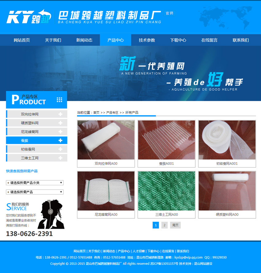 產品廣泛用于農業種植、養殖與防護,如種植上的植物支架網、大棚薄膜保護網、植物攀爬網、養殖上的養蛇網、養雞網、青蛙養殖網、養蠶除沙網、初級蠶網、尼龍小蠶網、尼龍復蔟網、硬質塑料蠶蔟、無結網、三維土工網、三維植草網、大閘蟹圍網多功能的木耳晾曬網、果園防護網等。