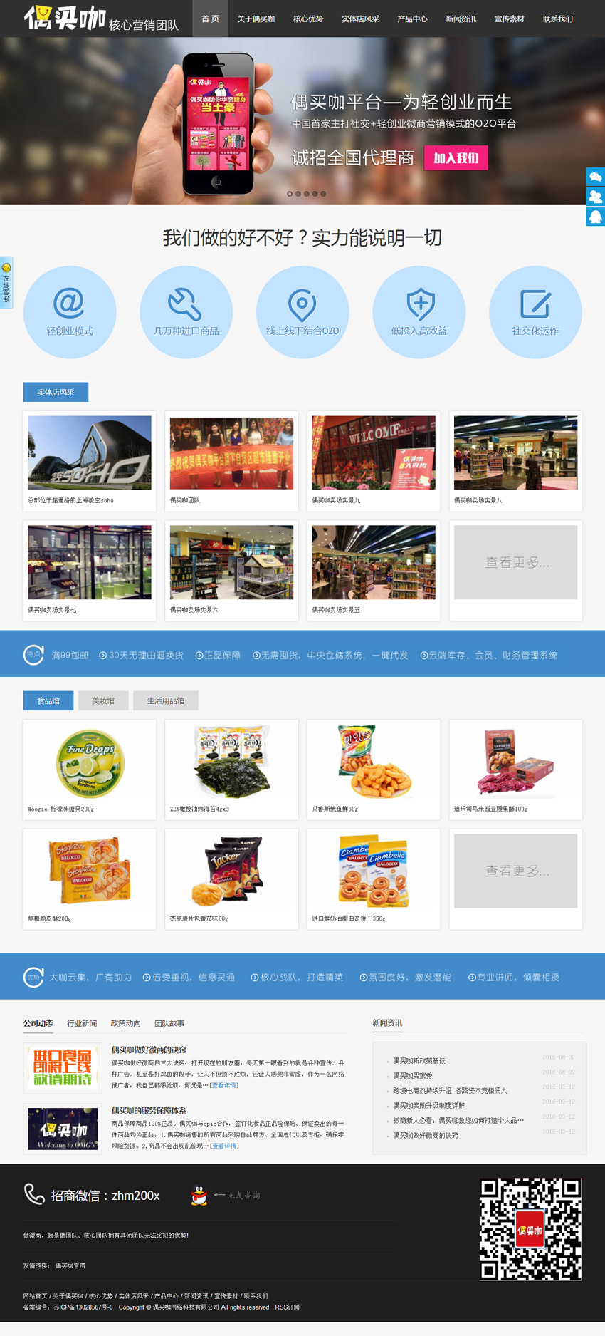 中國首家主打社交+輕創業微商營銷模式的O2O平臺,是由上海偶買咖網絡科技有限公司控股,并負責運營管理,并與全球1000多家國際品牌結成戰略聯盟。偶買咖平臺根據微商的發展瓶頸及趨勢,確定了發展戰略,打開了全新的社交+輕創業互聯網模式,以免稅店為基礎實現一鍵實現微商輕創業,打造國內最具誠信、品質、社交的微商平臺。并在運營中不斷改進、創新使得公司的模式以及理念走在了國內的前沿。這是全新的一個微商平臺,微商加入平臺可以擁有自己的免稅店鋪,店里包含了母嬰、美妝、食品、保健品、奢侈品、服裝、鞋子、進口汽車等等最暢銷的數萬種全進口產品。平臺提供宣傳、客服等售后保障,從而實現一鍵輕創業。