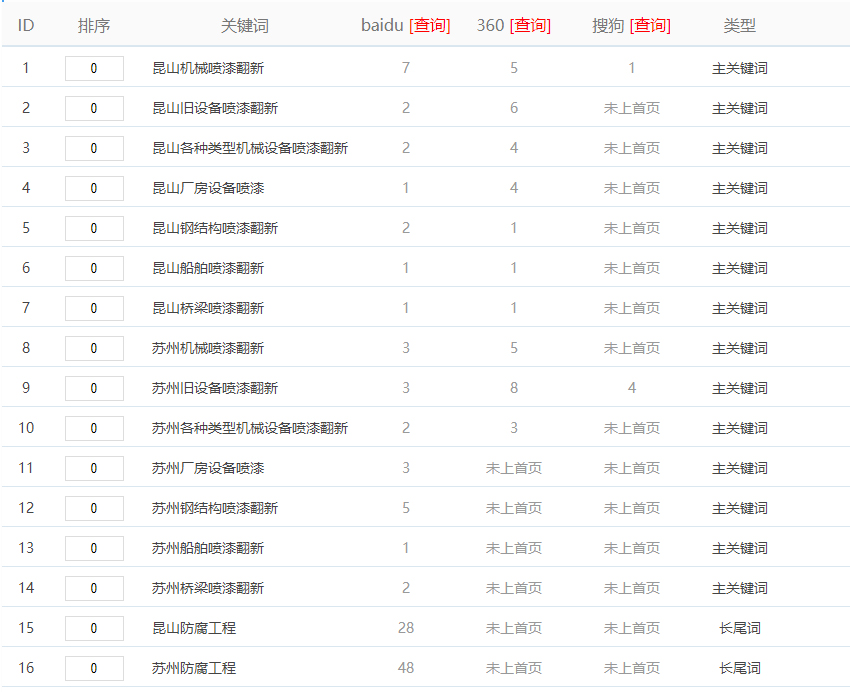 主要優化關鍵詞:昆山機械噴漆翻新 、昆山舊設備噴漆翻新、昆山廠房設備噴漆、昆山鋼結構噴漆翻新、昆山船舶噴漆翻新、昆山橋梁噴漆翻新、蘇州機械噴漆翻新、 蘇州舊設備噴漆翻新、蘇州廠房設備噴漆等