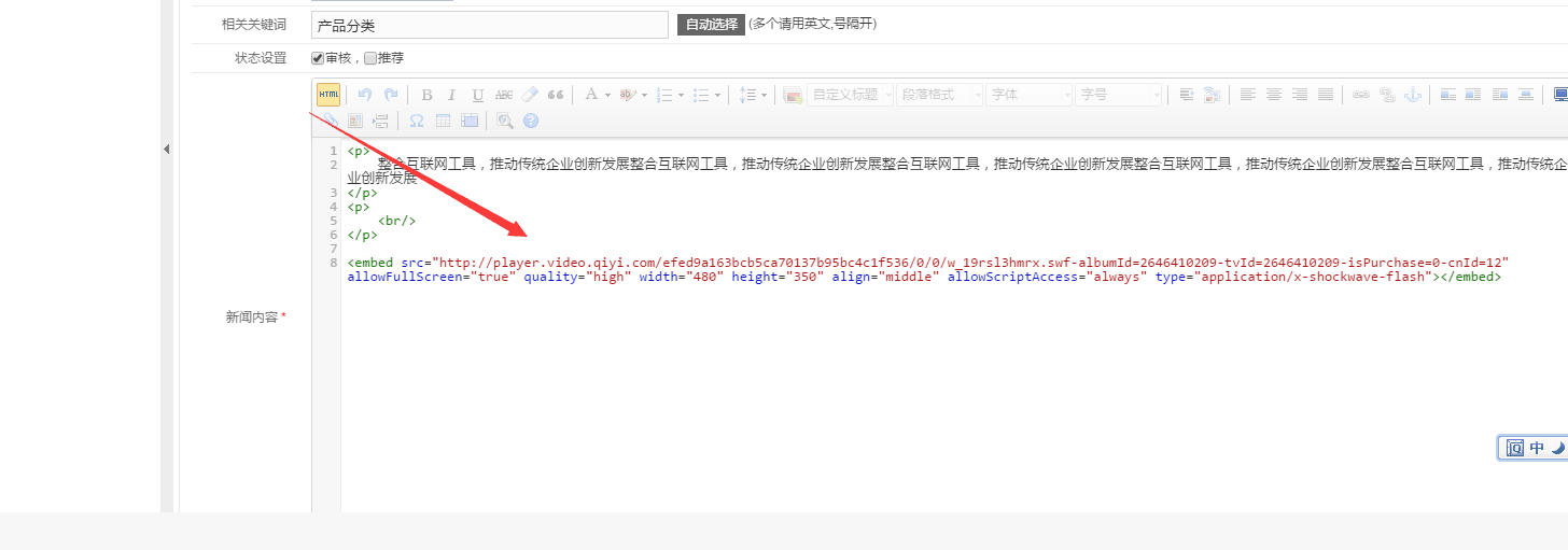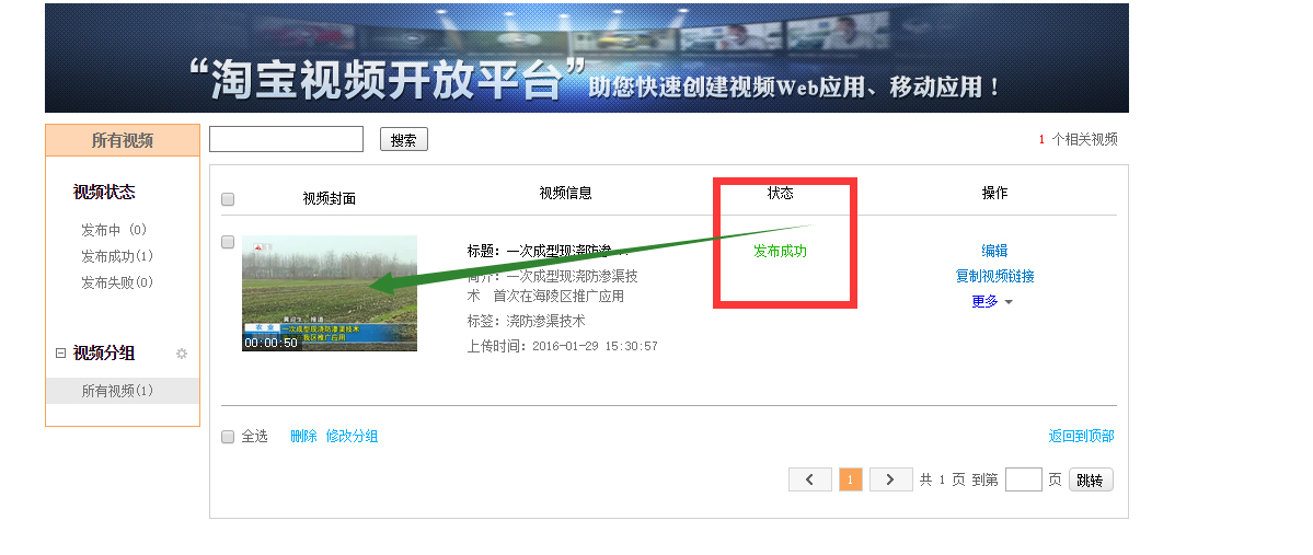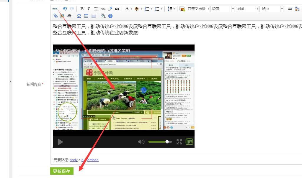 登錄地址:http://ugc.taobao.com/輸入淘寶的 用戶名和密碼登陸后 點擊上傳視頻第二步:選擇文件 填寫基本介紹第三步: 保存并發布,等待審核,審核后 會是發布成功。 一般30分鐘 會審核通過 很快的。發布成功后 點擊上圖中的圖片 看到播放;點擊分享 拷貝html代碼回要錄入的網站 把代碼放到億聯網平臺里面去。在代碼編輯模式的時候 操作; 返回 然后 看到 再保存 就可以了